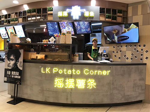 LK Potato Corner于美國、澳洲、泰國、印尼、巴拿馬等共開900多家分店,中國的第一家門店選址在杭州湖濱銀泰百貨,該店吸排煙設(shè)備選用的就是多環(huán)牌無管式油煙空氣凈化機,而且后續(xù)各個加盟連鎖店將標(biāo)配”多環(huán)“無煙管油煙空氣凈化機。